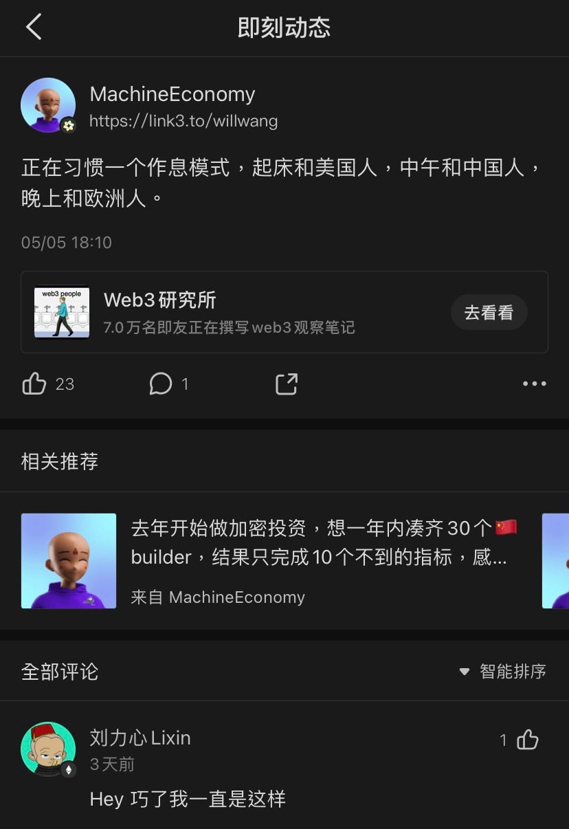 隨時可能都在工作,因為市場24小時在跑,你隨時都在追著新聞和最新趨勢。此外,Web3項目多數都是跨國團隊協作,亞洲和美洲之間的員工要互相協調時區,有時候可能要很早起,或是熬夜工作和開會。再者,用戶也分佈在世界各地,可能跟你的時區差好幾個小時,但要是凌晨半夜出現什麼狀況,而且是非常緊急的事,例如涉及到安全問題或資金卡頓的情況,你需要迅速解決,這代表你有機率要在深夜或清晨起來處理,因為這可能對用戶來說非常重要。進來之前,對於這件事情能不能忍受必須要三思或先判斷,或至少要挑一個可以相對穩定上下班的工作。